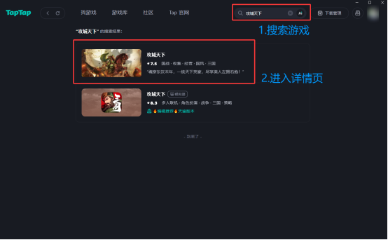 第三步:搜索“攻城天下”,进入首页。