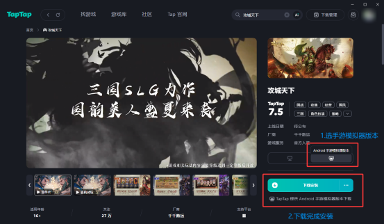 各位主公们,咱们《攻城天下》在Tap上开放PC端咯,没错不用再担心挂机手机费电了,直接在PC电脑上也能与Android玩家一起玩了,并且官方账号已实现双端登录。