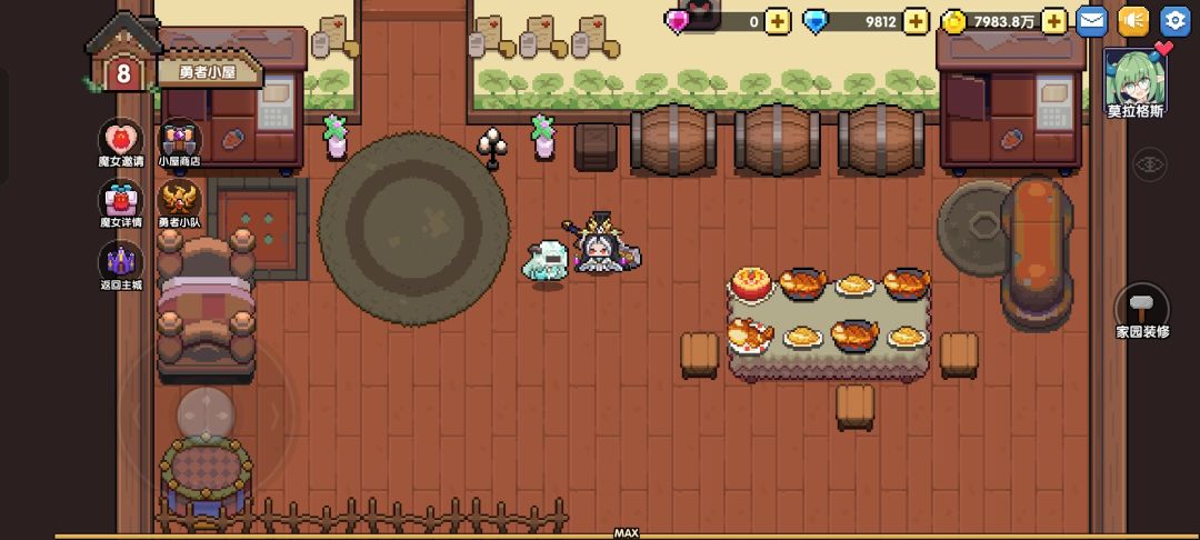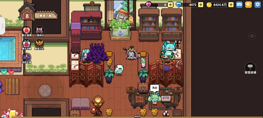 魔女邀请、小队集结的功能按钮就挂在侧边,冒险与休憩在此完美相融。这方小小的像素天地,既是我存放战利品的宝库,也是和魔女伙伴们相伴的温暖据点,每次回到这里,都能卸下冒险的疲惫,满心都是归属感。#我和我的勇者小屋