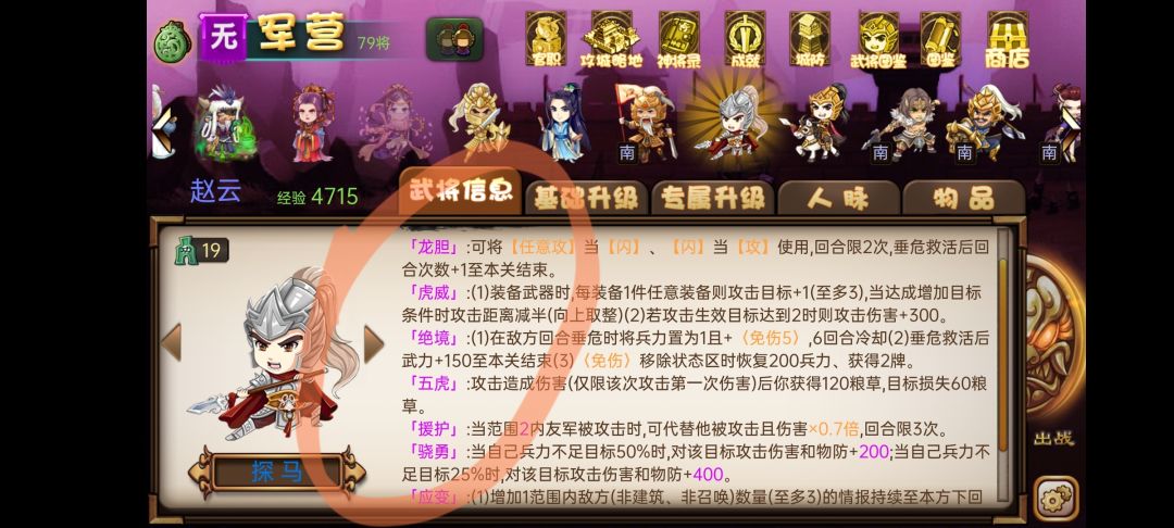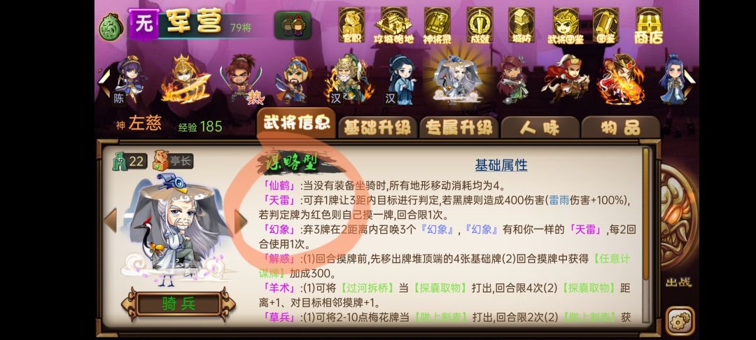 怎么保证后面的人安心收麦子,有一个障碍武将堵路最好,因为对面伤害太高了,我们只有500经验值可用,那么就需要一些特殊武将