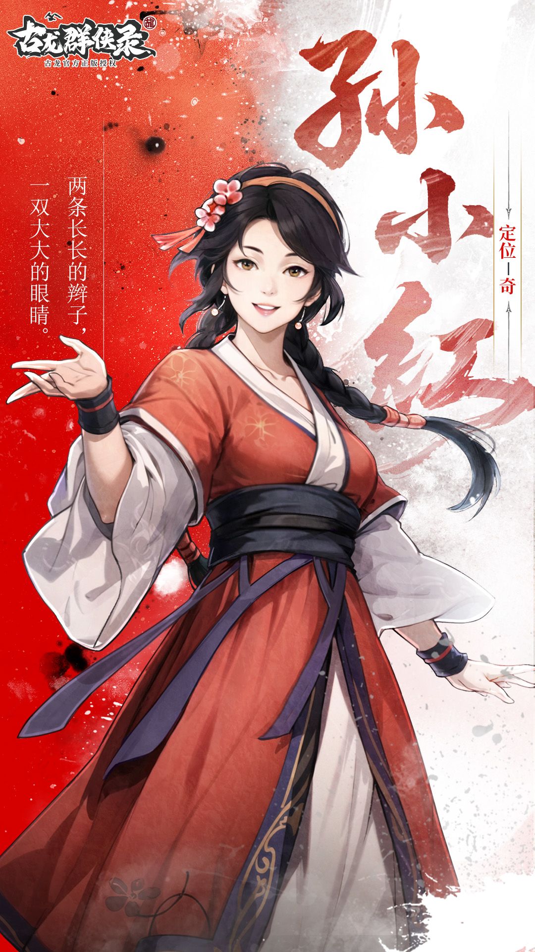 古龙武侠小说《多情剑客无情剑》中的重要人物,梳着两条大辫子的可爱姑娘,一双大眼睛勾魂摄魄。对江湖事知道的很多,表面不会武功,实际武功很高,擅使暗器,步伐轻灵。她出身于一个神秘强大的家族,爷爷是《兵器谱》排名第一的天机老人,祖孙二人常结伴以说书人的形象给李寻欢、阿飞等人传递消息,以维护江湖正义