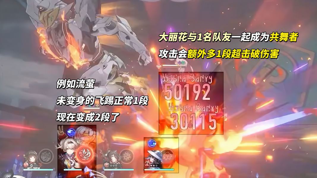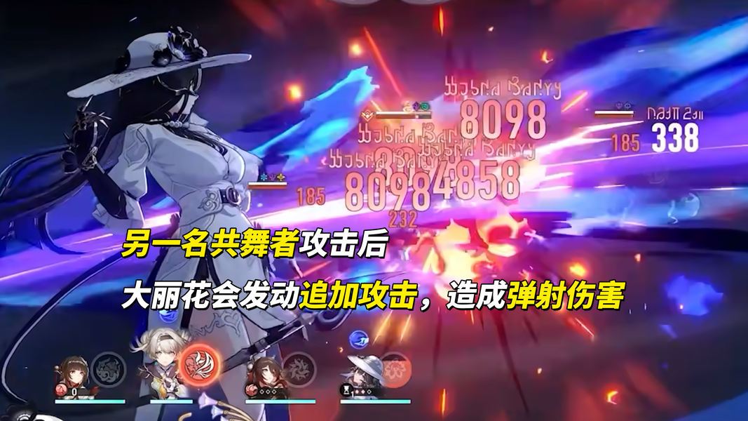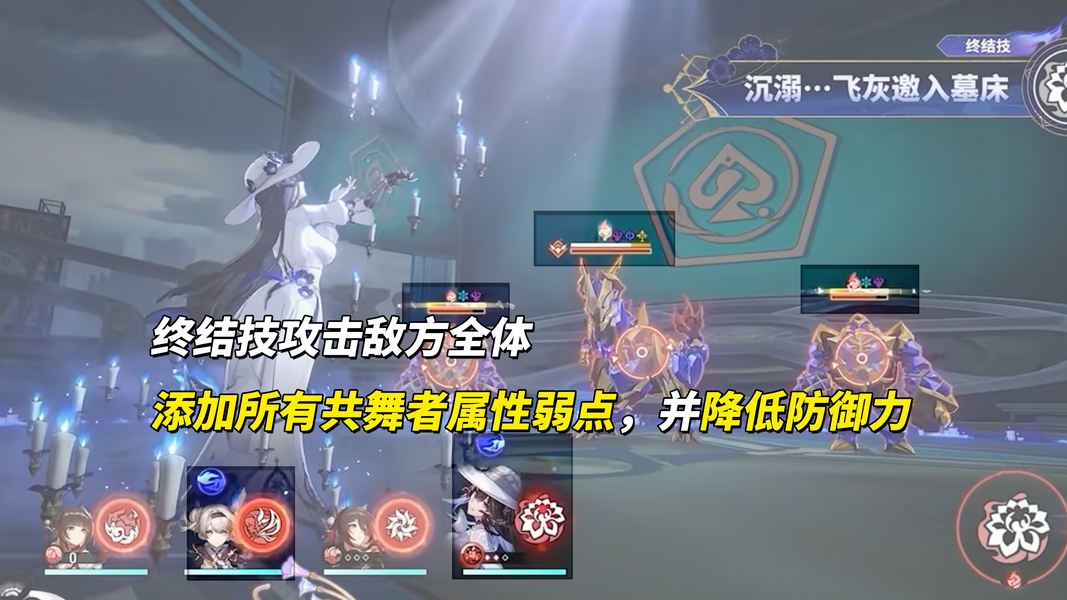 终结技则是对敌方全体造成均分的伤害,降低敌方防御,并添加所有【共舞者】弱点。