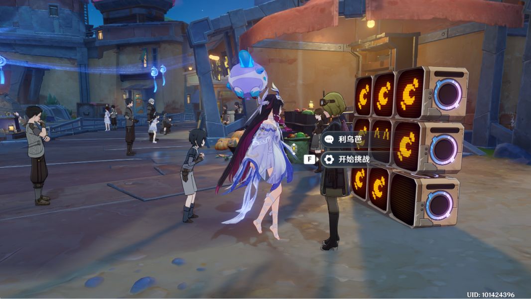 ⑥小机器人实验。朝合成台方向前进,在坡道旁边有一个九宫格显像机器人实验,可以交互玩小游戏。通关3次会给1万摩拉。