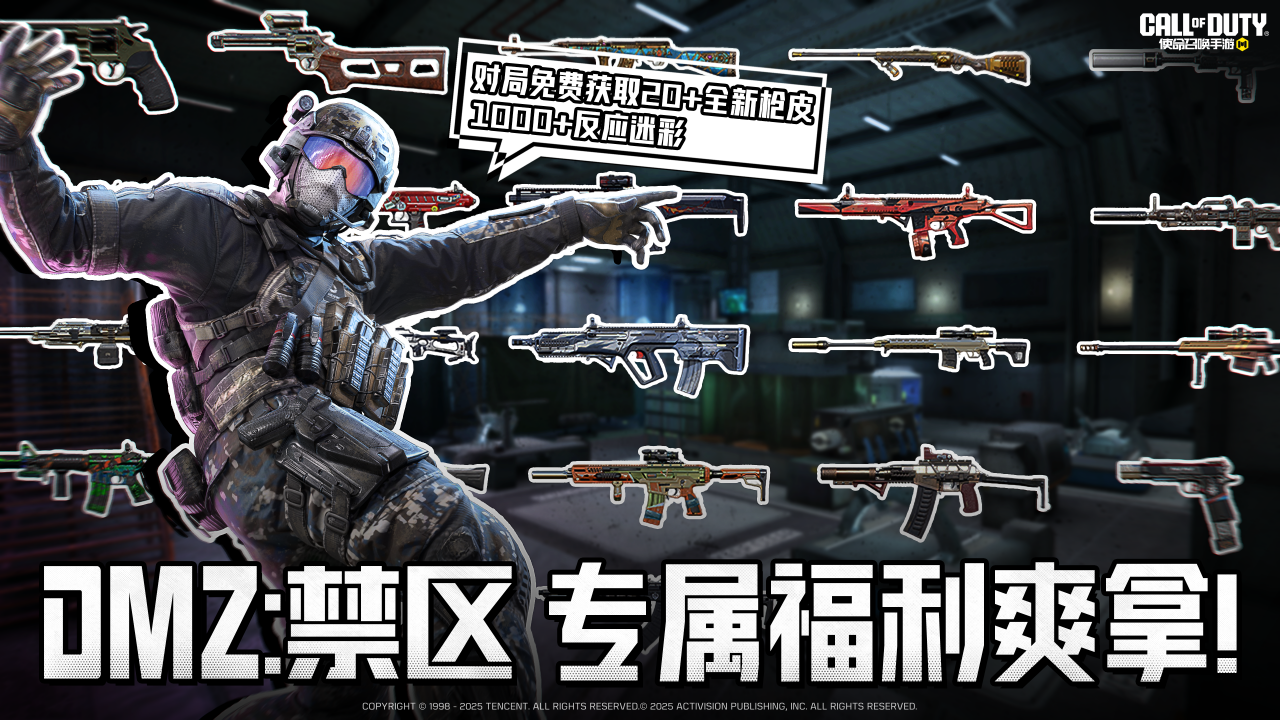 参与对局可免费获取20+全新枪皮,1000+反应迷彩!