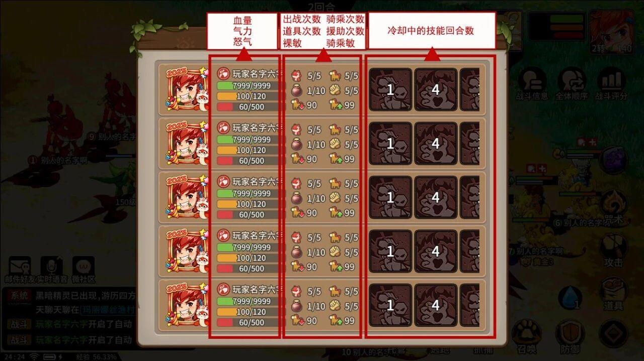 为了让石灰们在战斗过程中更高效的进行战术布阵,我们将为大家提供战中我方的当前信息,包含玩家状态、宠物、技能、道具等信息。