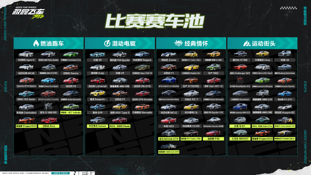 第三大局选车池刷新,全车库解锁,所有车可选,刷新后每名选手每辆赛车只能使用1次,选车不限组别。