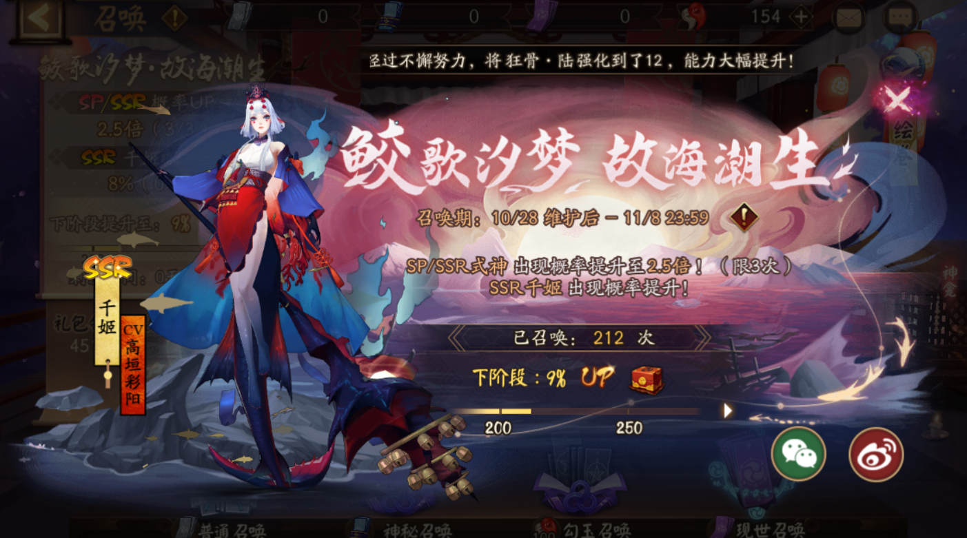 回坑3周 建了个新号 当时抽到了个SP姑姑,就打算一直玩下去,结果这次概率UP200多抽就只出了山风和荒,觉得没啥意思了,终于在活动结束的前几个小时,随手抽了一发,完成那个铁鼠3抽任务,结果就出了,他真的出了!还是我特别喜欢的铃鹿玉前!爱了爱了,真的黑到极致就会欧。祝各位还在坚持的阴阳师们都能抽到想要的式神!