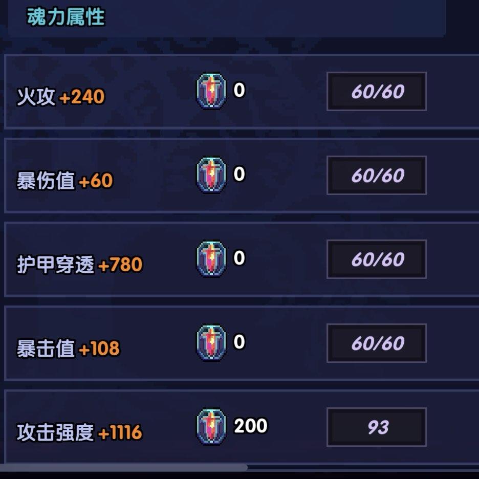 魂力加点:优先点满攻强+火攻+爆伤+护甲穿透+暴击值 剩下全部点攻击强度