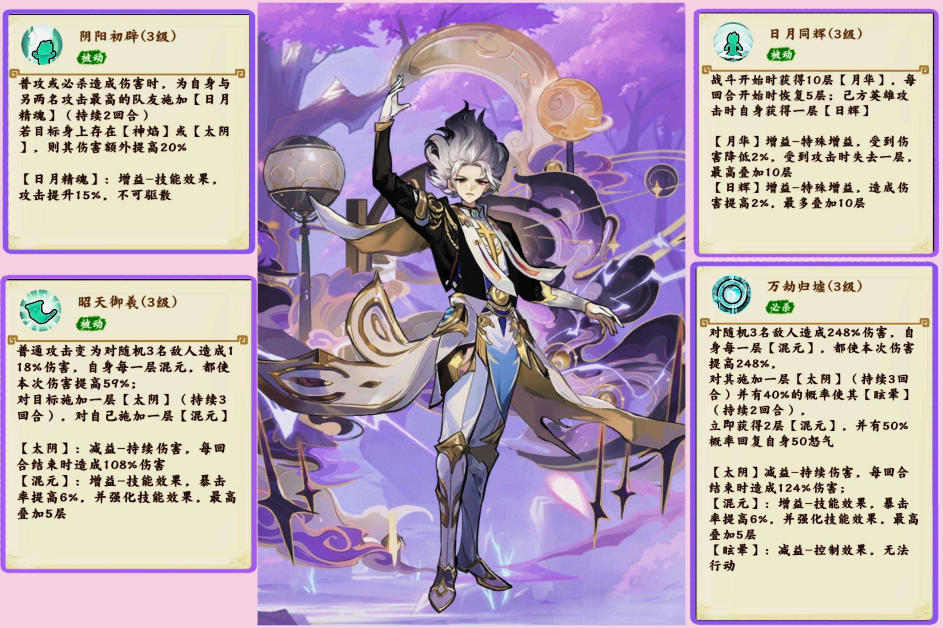 「简介」:集回怒、增伤、减伤、控制于一身,被动叠起来,一个大招攻击三名敌人可打出1488%倍率的伤害,还有持续伤害,可以叠加30%暴击率,也能为公孙离加攻击buff,可以说是六边形战士,就是差点吸血;