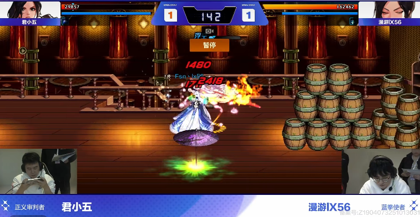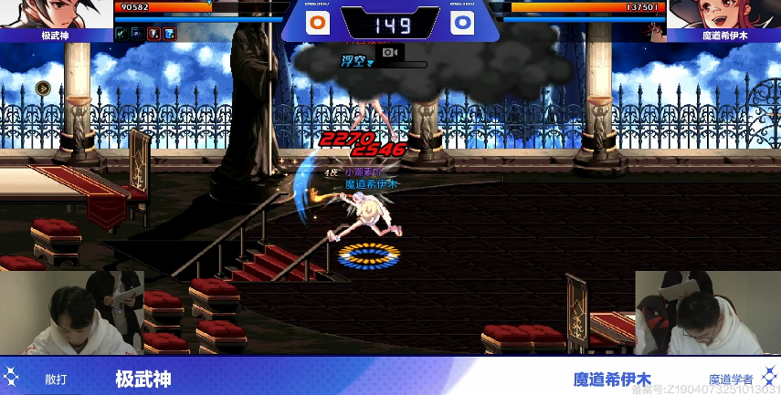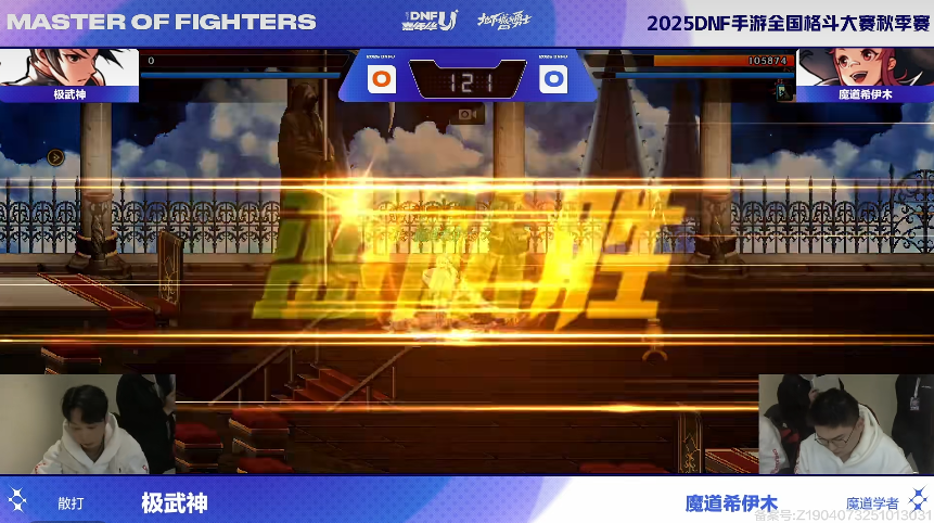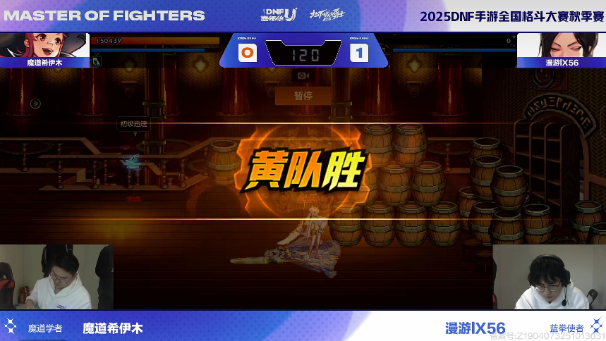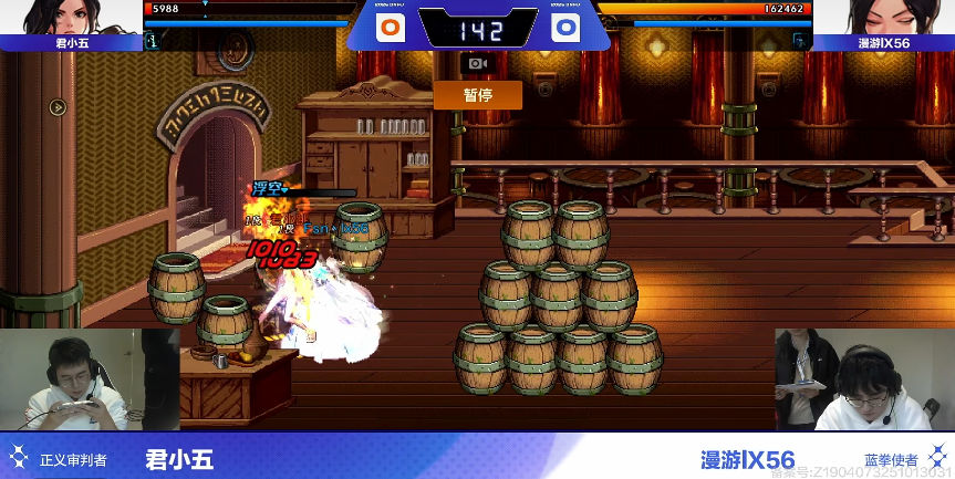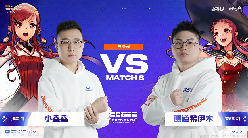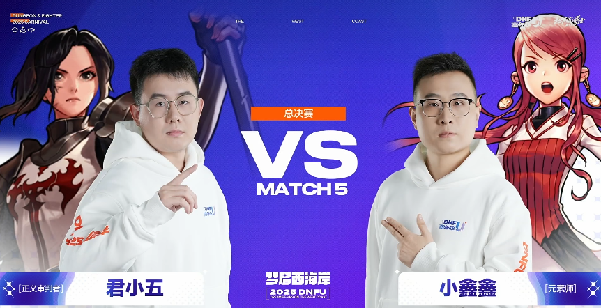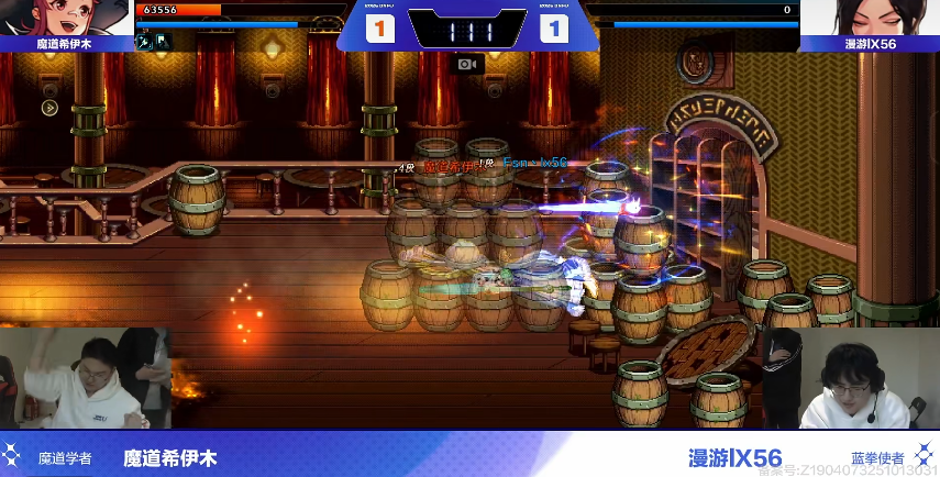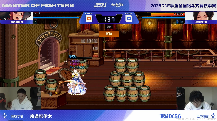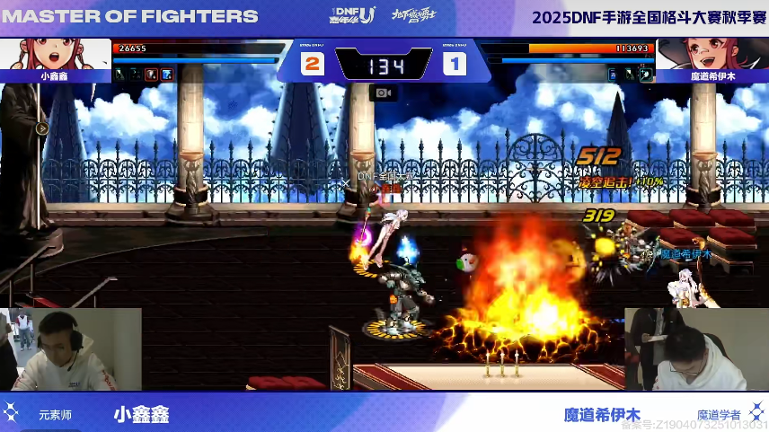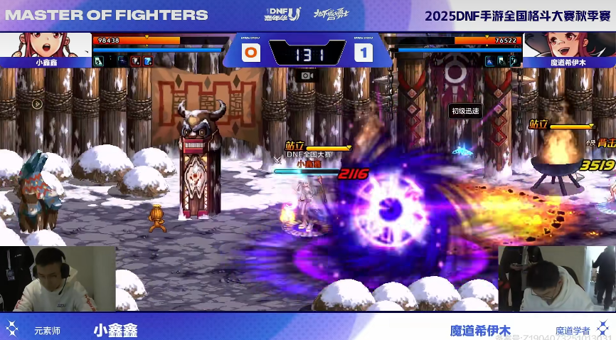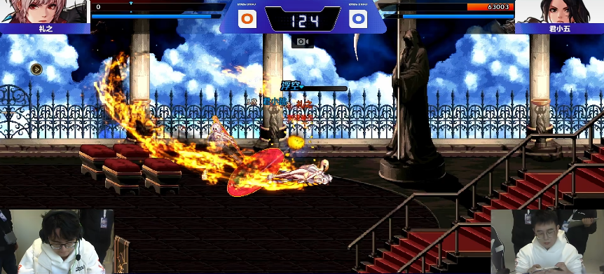 两人对战进入胶着,上方互相试探,这局比赛两人都没有打出过一整套的连招,全部依靠消耗,在消耗方面小鑫鑫的元素更胜一筹,追平比分