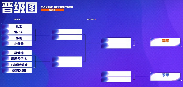 那么本次四强赛元素小鑫鑫和魔道希伊木进入胜者组争夺冠军,团长君小五和蓝拳lx56进入败者组争夺季军