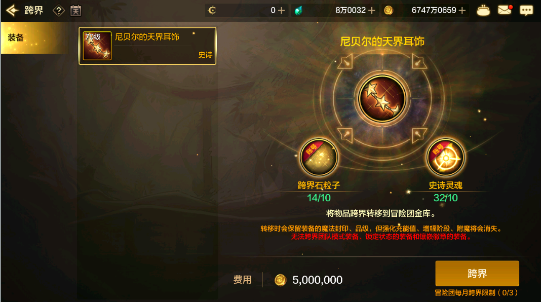 跨界石的获取并非一时,需要玩家长期积累才能凑齐10个从而进行装备跨界,我们在选择优先级跨界魔法石/耳环时,要考虑好该职业的“最优特殊装备套装”进行跨界;在达成特殊装备毕业之后,我们再采取“防具”或是“首饰”多等1时跨界,这样做的好处就是可以完全摒弃掉征讨之地某一副本,全力刷增加左边/右边装备掉落概率的副本。