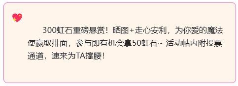 - 帖子要求:内容需包含“应援理由+图片/视频”,理由可围绕角色外表、语音、性格等任意维度展开;图片支持魔法使官方立绘、游戏截图,也可使用AI生成的专属形象