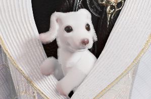 通体覆盖纯净白色毛发,耳与爪垫带有淡粉色晕染,颜值在犬科异兽中堪称顶尖。甚至偶尔穿越至现实世界,也引发路人连连称奇。