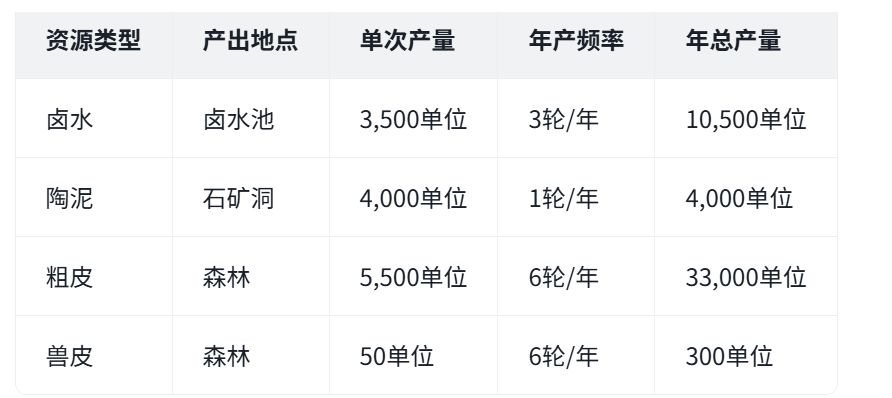 一、3个资源点产量