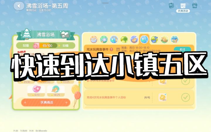 其次就是其次就是手册的庆典活动里面如P123,点击前往可快速到达捕鱼,捕虫,捕鸟赛季限定活动的地点,一般来说,这些活动的地点会分散分布在小镇四周,花田森林温泉山渔村四个地点之中的三个,而且这个是免费的。