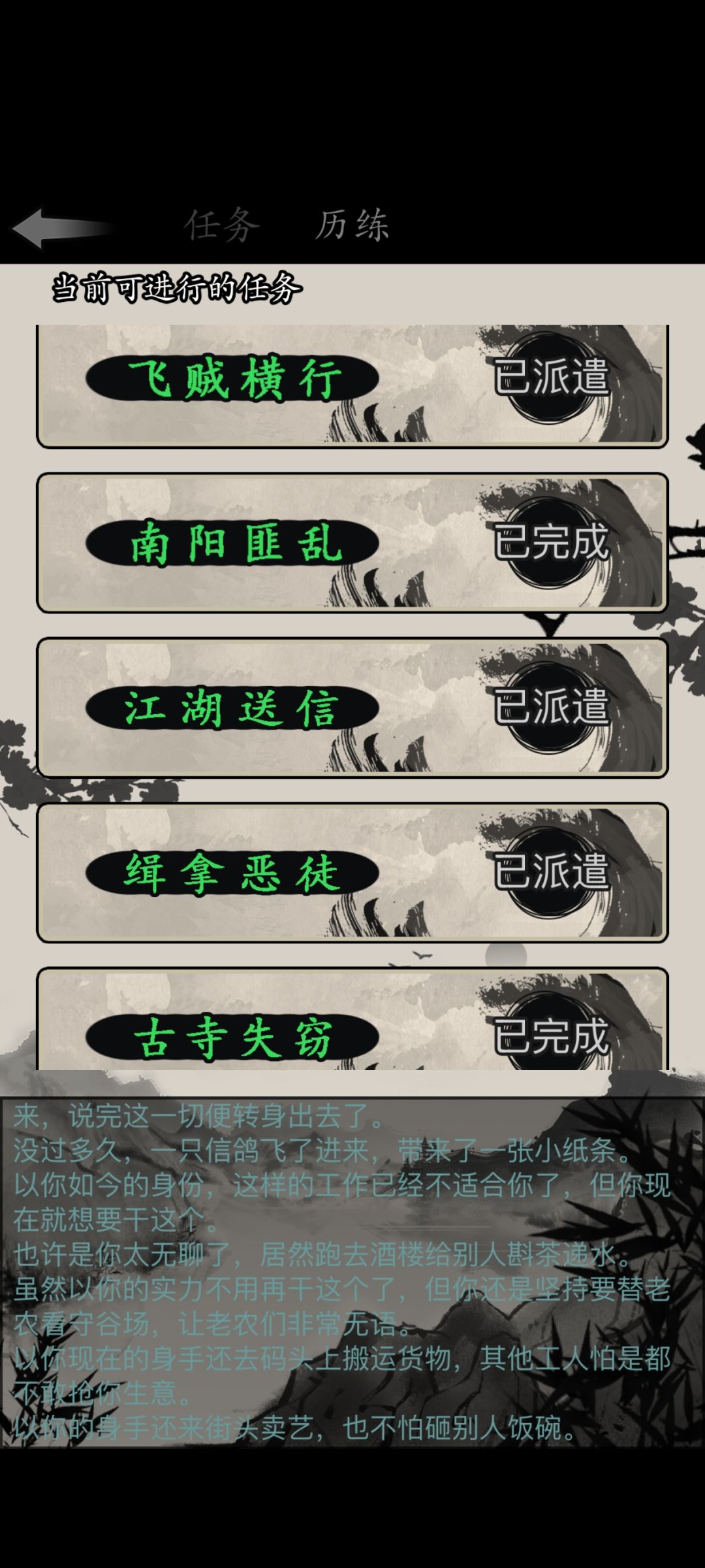 江湖历练中出现的任务最优先做!!!(一周就五个任务,早做早结束)