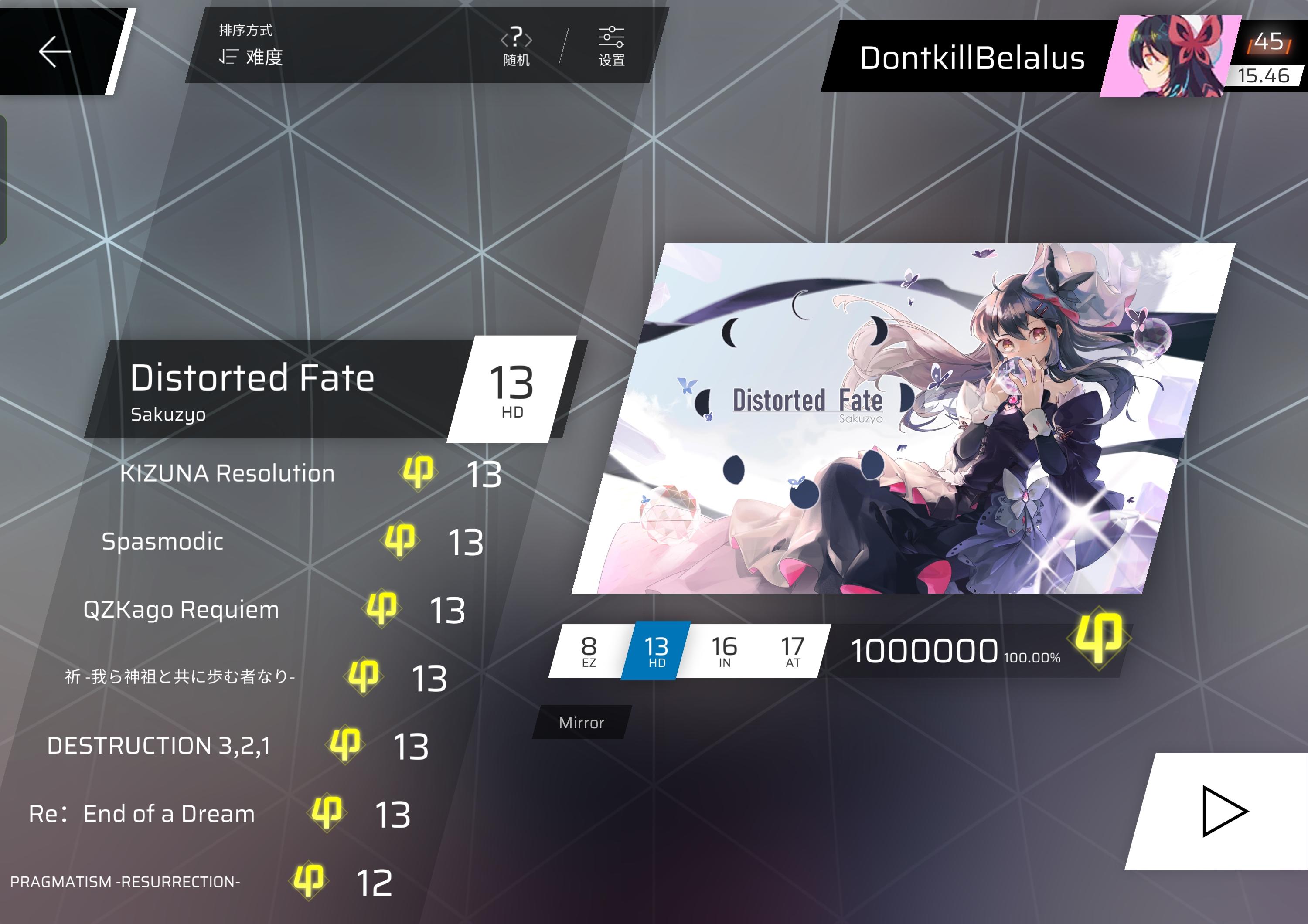 player / DontkillBelalus, While having Spasmodic, Still March with God in the End of the Dream, Against Destruction and Distorted Fate, Play his own Requiem, to find Resolutions