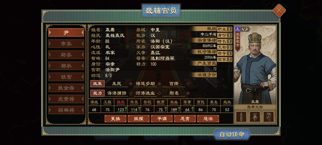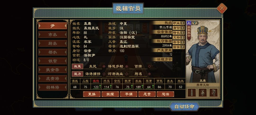 地方治理只是开胃菜!与皇族联姻获外戚身份,迈入权力核心;弹劾宦官党羽,其门生故吏反扑克扣军粮;安插心腹推“粮税统筹”,豪族或投靠或反抗,可借势平叛收编换族。换丞相换玩法,“一策定乾坤”,玩一次就沦陷!