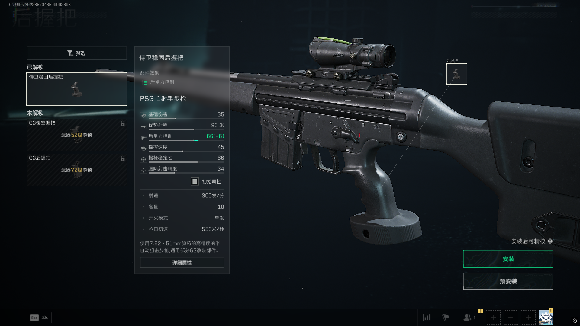 PSG-1后握把:+6据枪稳定性、-2操控速度