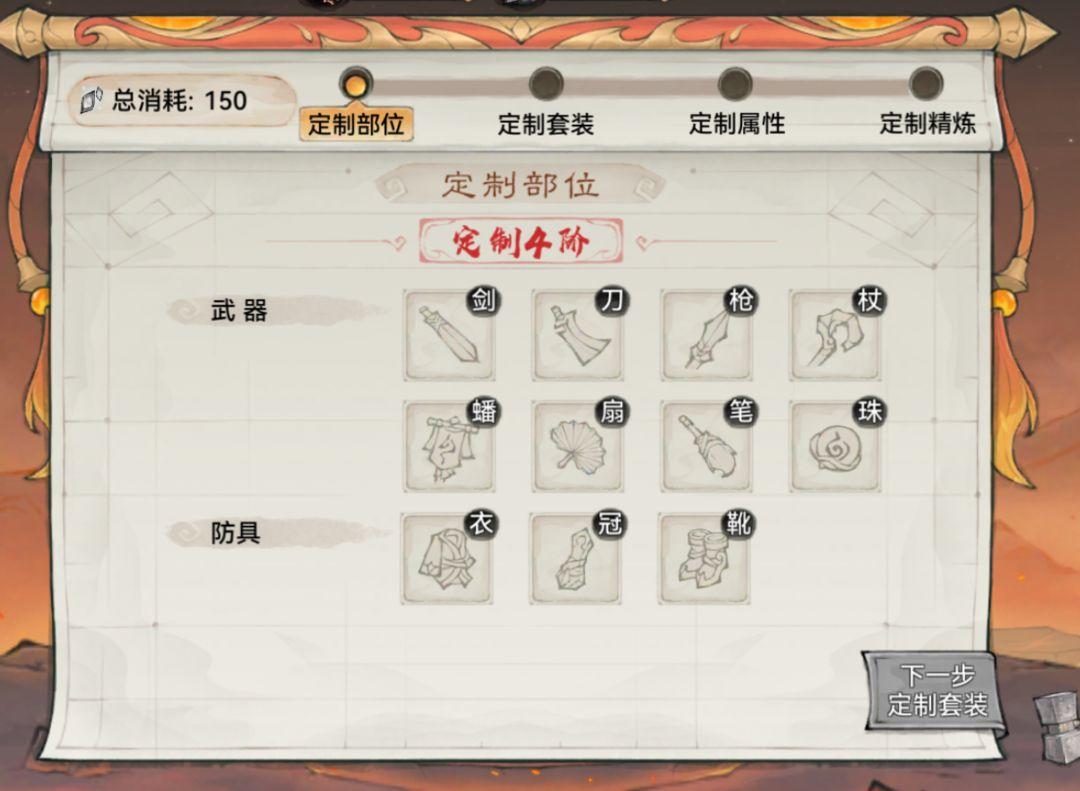 玩家定制的品阶是几阶,自选一个部位。左上角会提醒显示打造要需要花费消耗品数量。