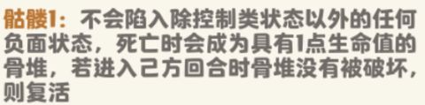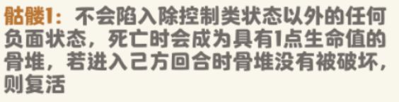 该技能是骷髅的赖场神技,不仅抵抗大多负面状态,还强制对方必须一回合内击杀我们两次,且当我们属性提升起来时,得有两只攻击力不小于4的随从才能将骷髅勇士击杀。