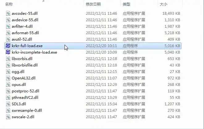 吉里吉里电脑版2.打开krkr-full-load.exe