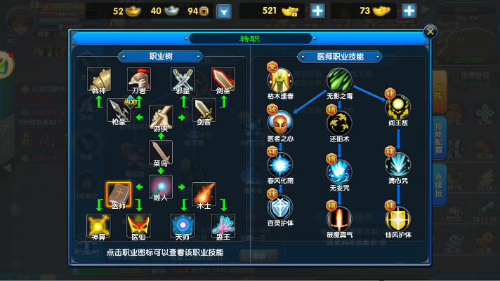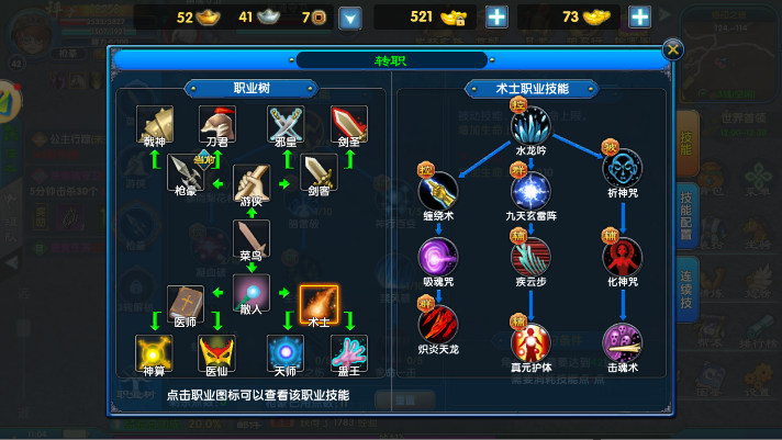 职业选不对,后期徒伤悲!新服转职节点:10 级一转、30 级二转、20 天 + 60 级三转(洗点道具需 500 元宝,超贵!),不同职业适配人群: