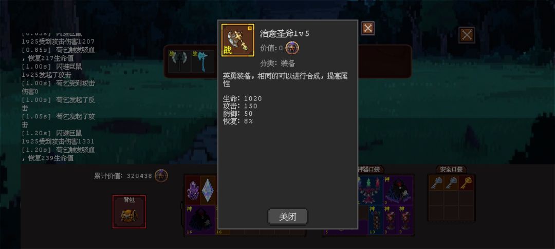 最后分享一个苟一点的办法玩这个模式 安全箱是免费的 没有装备打20万的图就先去免费地图搜神器 把紫色品质的都放安全箱带回来 最后装上你最大的背包 再把紫色神器装满 不保险的话再去商店买一瓶2000血的血瓶 直接进3万地图可以夯到底 类推20万地图 觉得神器太少就屯点血瓶 两个8000血瓶带上 任何图都夯到底