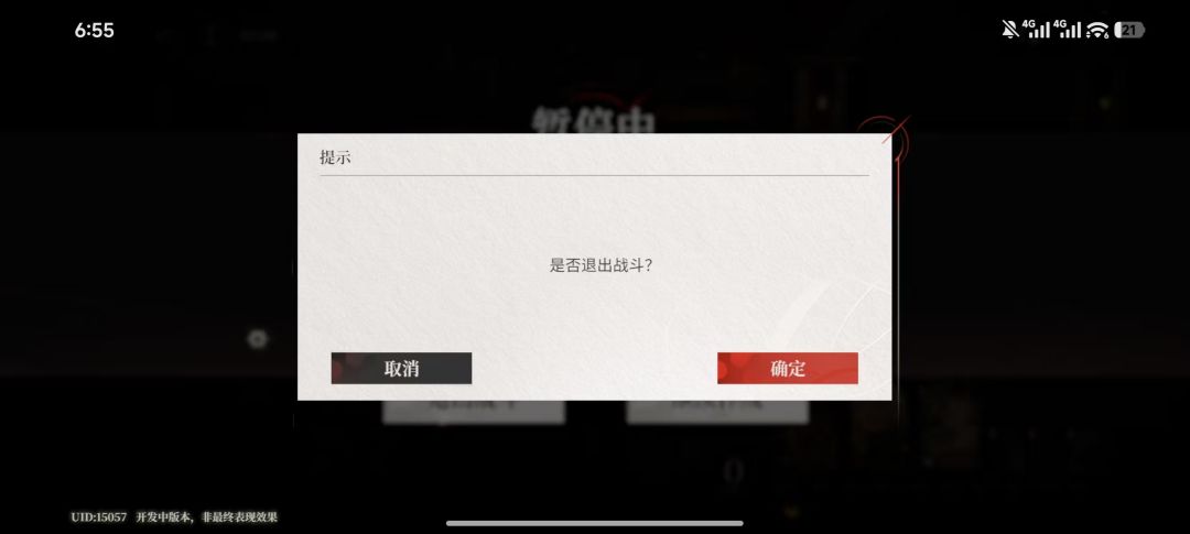 首先,角色放大的时候我们是必须看完动画的,所有按键都消失了(有时候打不过想退还得看他三毛钱特效,也是很憋屈);其次,退出战斗有三个页面。第一页确认退出or继续作战,点到别的地方不会有交互;退出战斗后还要弹窗问你是否确认退出(一般来说重开不是在第一个页面就是在这里吧);第三个页面才能选重新挑战or彻底退出,且这个页面里只要误触了其他地方,直接彻底退出了,测队伍的时候红温*n......