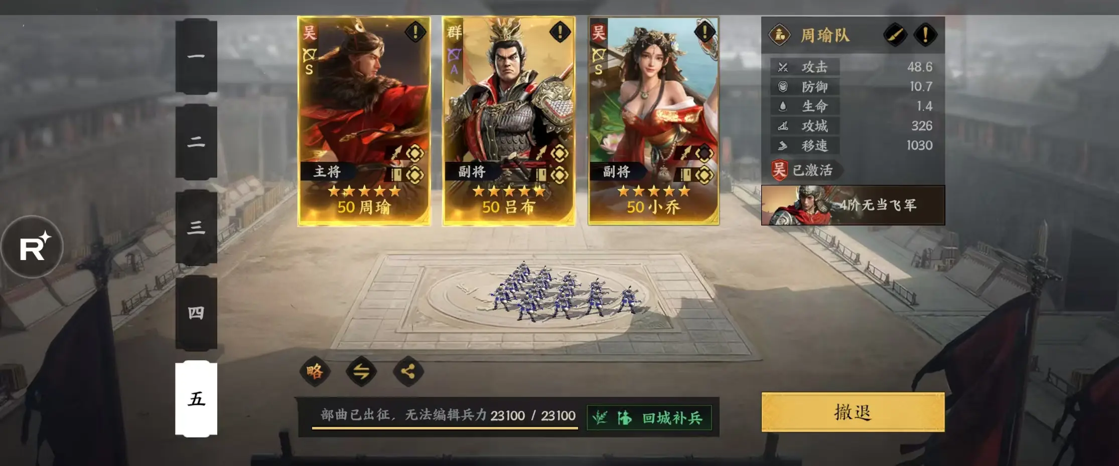 大兵团作战的利器。周瑜提供高额群体伤害,吕布专武技能随时间推移愈战愈强,小乔则提供稳定辅助。此队在大型混战中能发挥巨大作用。