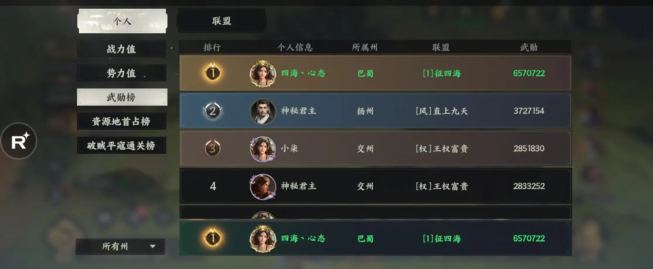 ●大都督「四海丶心态」:盟内的指挥与战术大脑,开荒、武勋皆榜上有名,对阵容搭配自有心得。战场上,他一人分饰三角,通过清晰的指令,精准调度着盾兵、骑兵、弓兵三组大军。30秒内的战术撤离,精准的视野抢占,令行禁止的钢铁纪律,是他们能以寡敌众的基石。