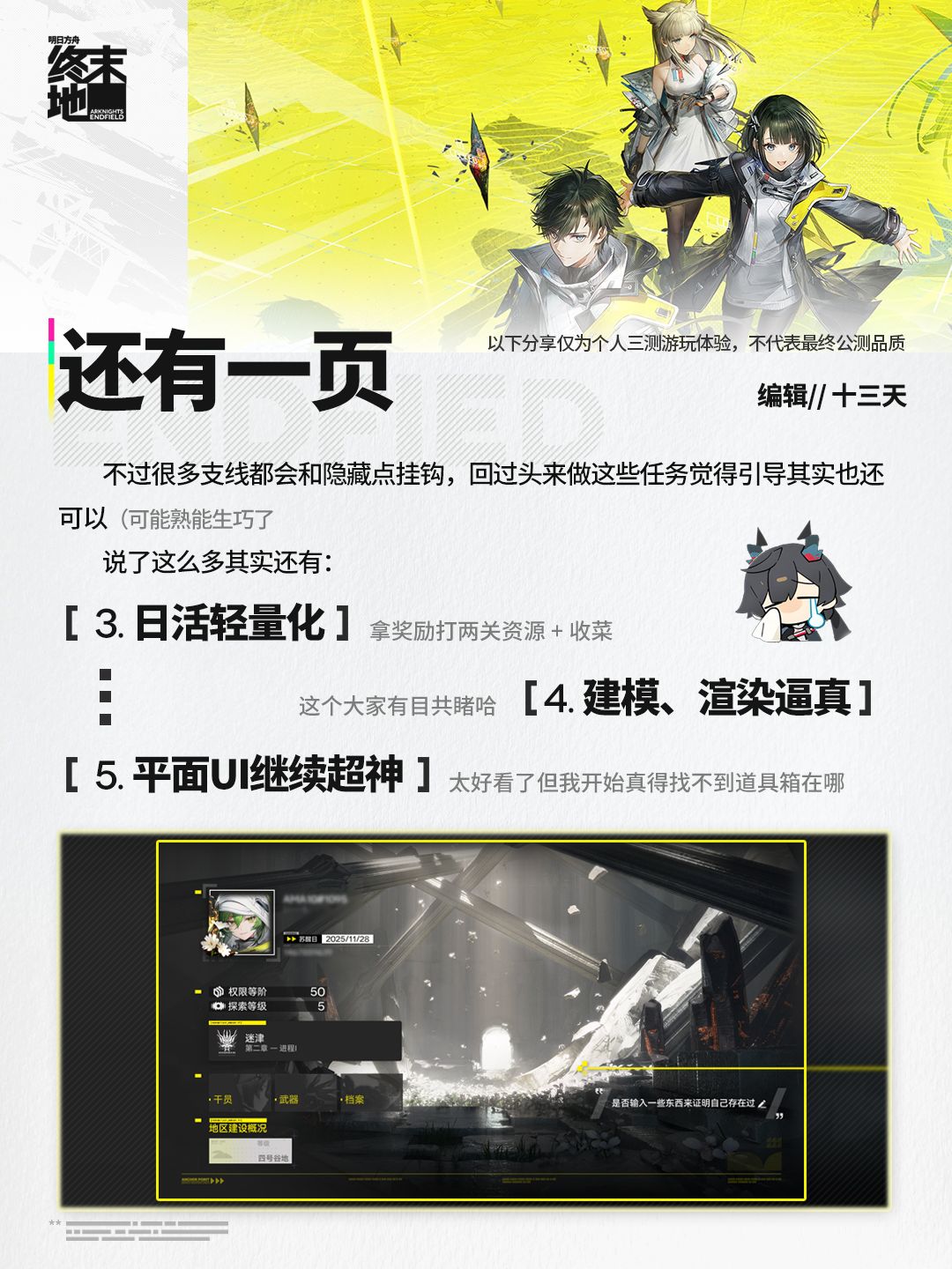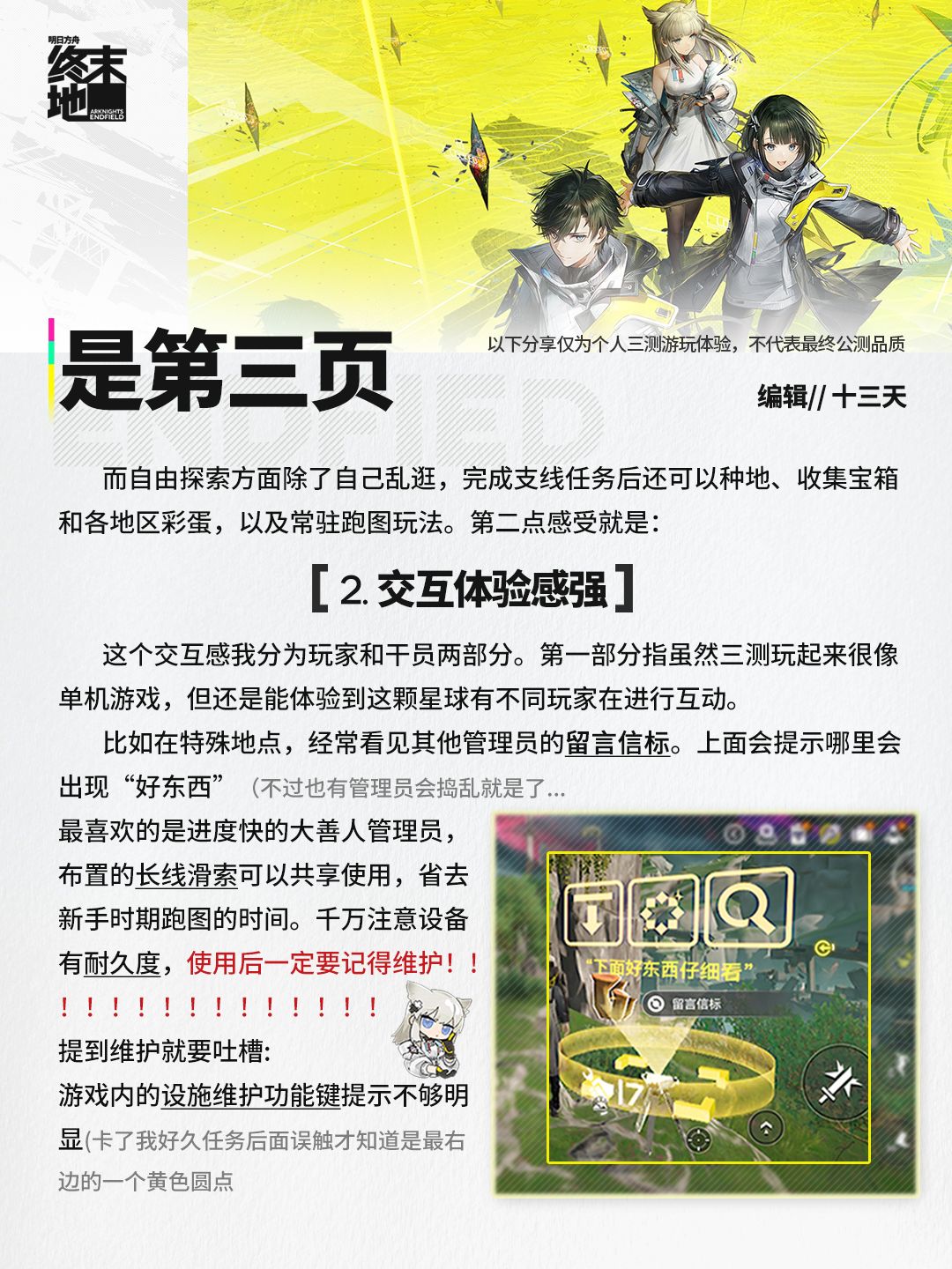 「终末地三测」体验报告