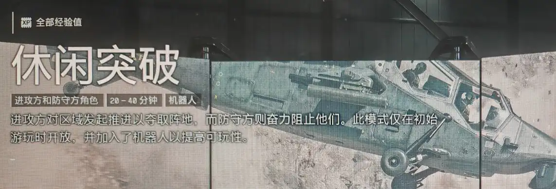 或者是这个休闲突破模式,每队 8 名真实玩家+16 个机器人,完整的游戏进程、达成挑战可以获取经验值(包括武器、个人资料以及战斗通行证的经验值)