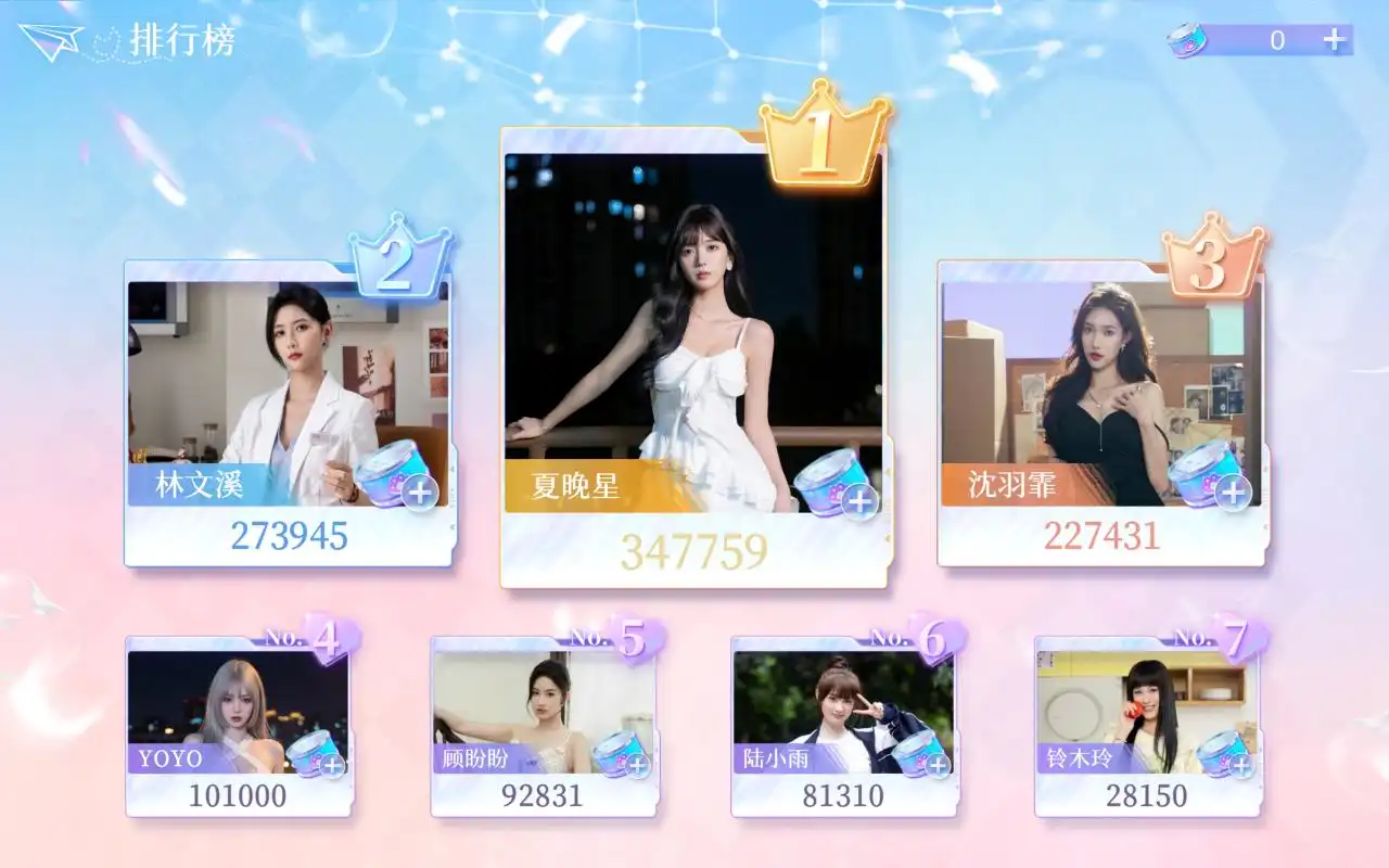 随着玩家的剧情推进,还可以获得“猫粮”,用于给主页自己喜欢的角色打榜。按目前来看,大家好像更喜欢最好看的夏晚星