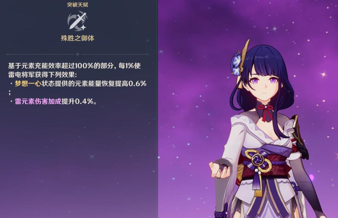 第二位,就是稻妻上架的雷电将军,这个角色,拾柒可以说是从稻妻用到了枫丹,无论玩谁的号,我都会第一时间找找有没有雷神,如果有,那么基本深渊就稳一半了。