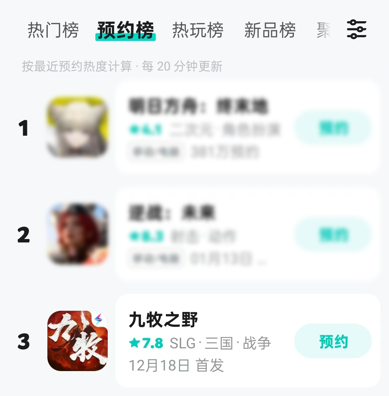 《九牧之野》也正是在你和其他玩家不断用脚投票下,冲入TapTap新游预约榜Top3。
