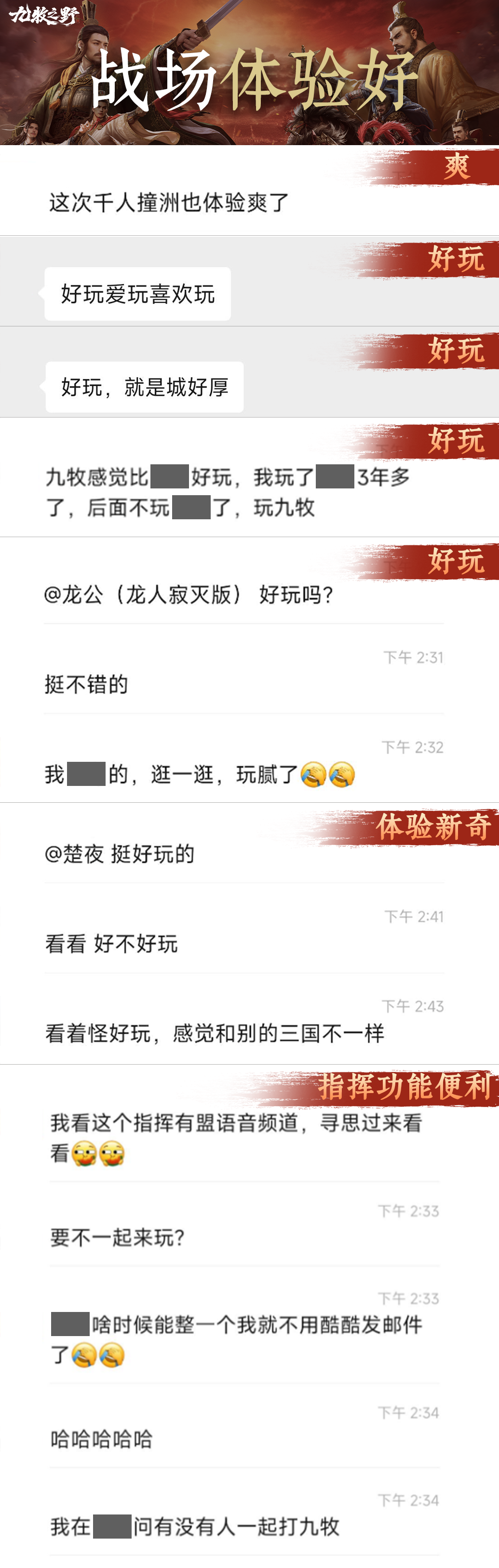 经过多轮线下试玩请教会及「撞州测试」,《九牧之野》凭借平衡有深度的配将玩法,指哪打哪的自由行军操作以及千队同屏的战斗体验,让无数玩家留下好评。