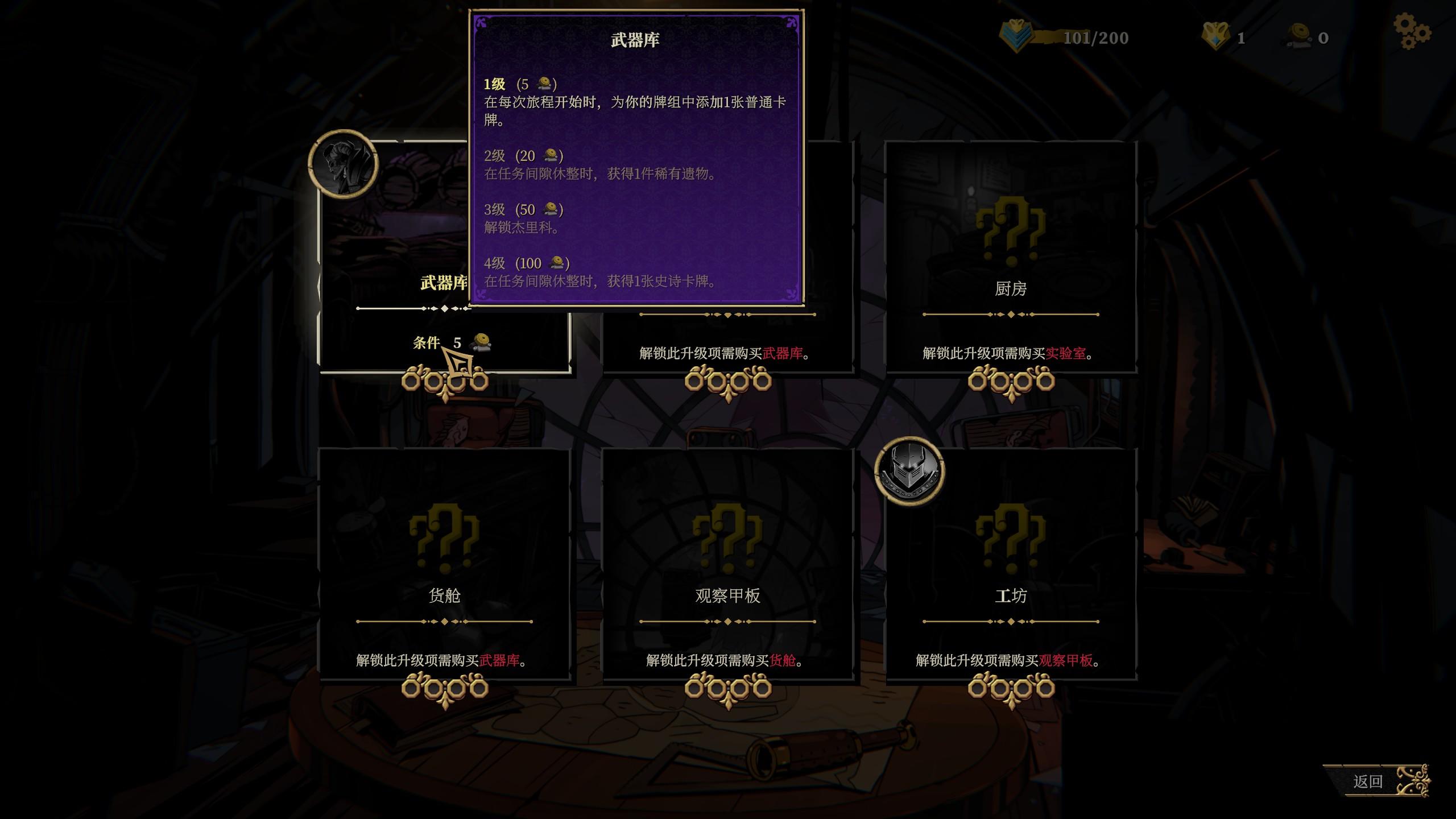 另一个重点是花钱修复“椋鸟号”上的各类建筑,修好之后可以获得属性奖励或者局内的硬性奖励,这些资源我们上文也说了,即使失败也能带回一些,供我们的角色成长。