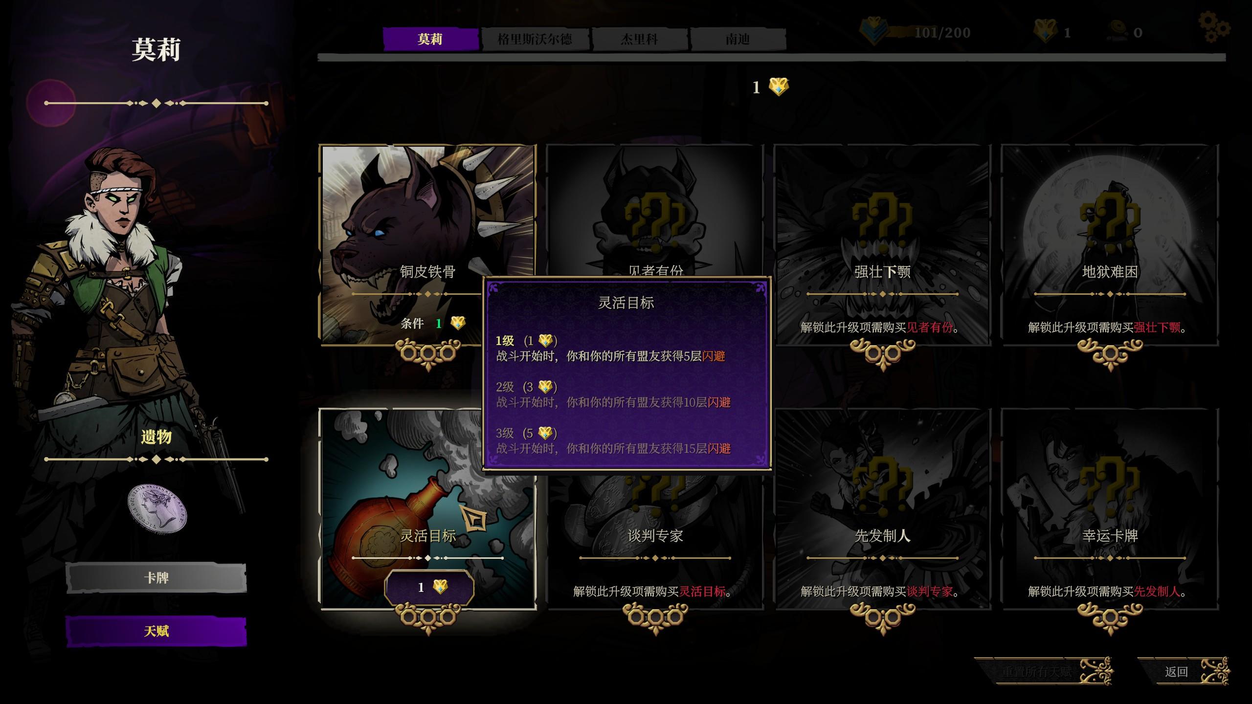 每个角色一开始的牌组都挺废的,都是基础牌基本没有数值牌,在局内获得奖励的时候,也不一定会随机到好用的卡牌。这就需要我们通过点亮天赋增加角色及其召唤物的基础数值,或是加血量上限,或是开局自带闪避,无论哪种都很重要。