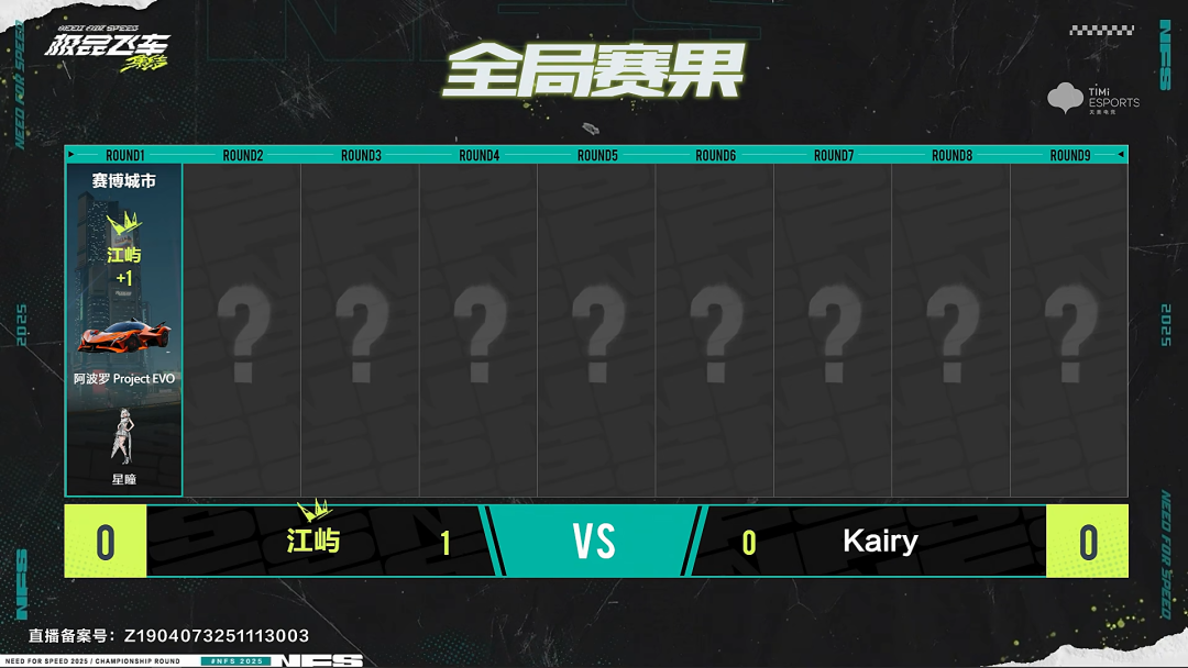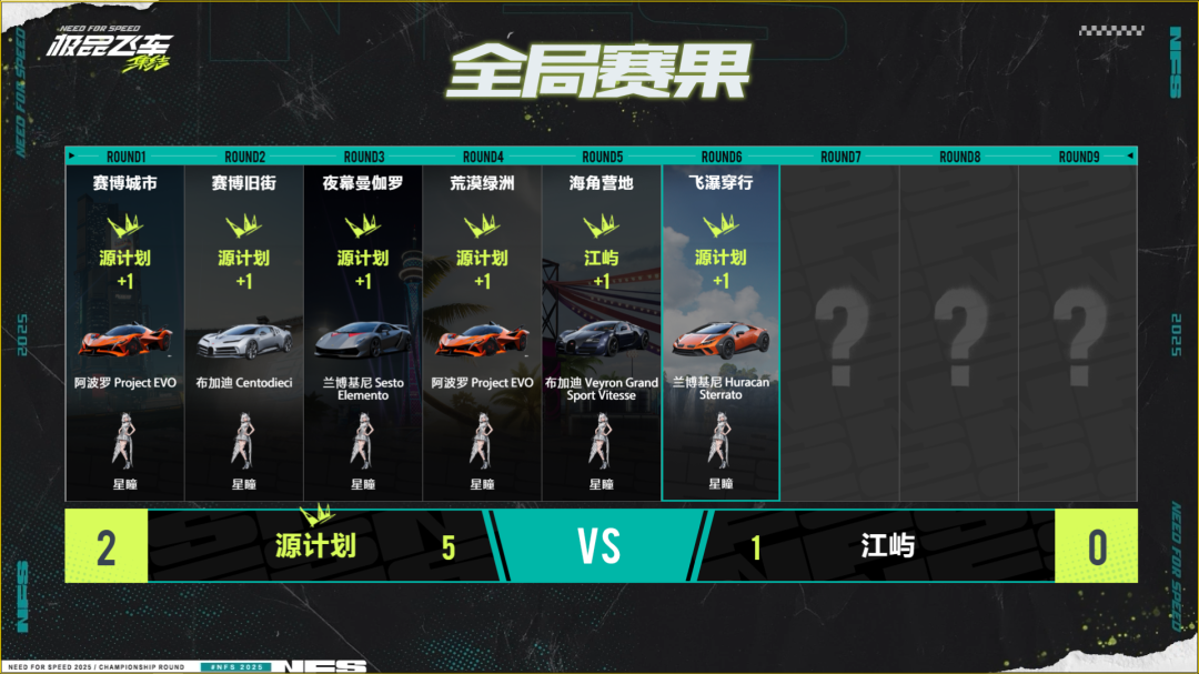 第二大局开始江屿选择用兰博基尼 Sesto Elemento对抗Apollo Project EVO先失一分,但他迅速稳住心态,以沉稳的发挥在环山小镇拿下一分。随后的赛博旧街更是将对抗推至白热化,双方你追我赶博弈拉满,胜负仅在毫厘之间。