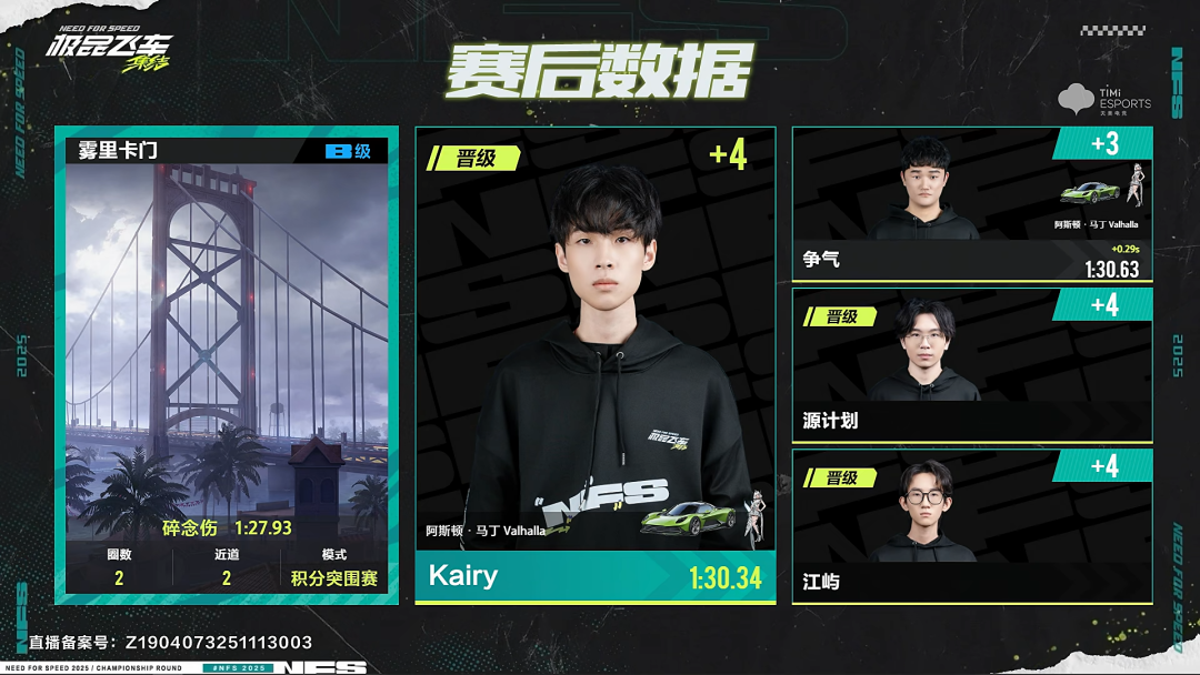 首次登上决赛舞台,Kairy便以沉稳的心态、老练的选车策略与一次次惊艳的操作,点亮了整个赛场。这份初绽即耀眼的光芒,注定被铭记。前路仍长,未来可期,期待他重返赛道,以更快的速度、更强的姿态,向更高荣誉发起强力冲击!