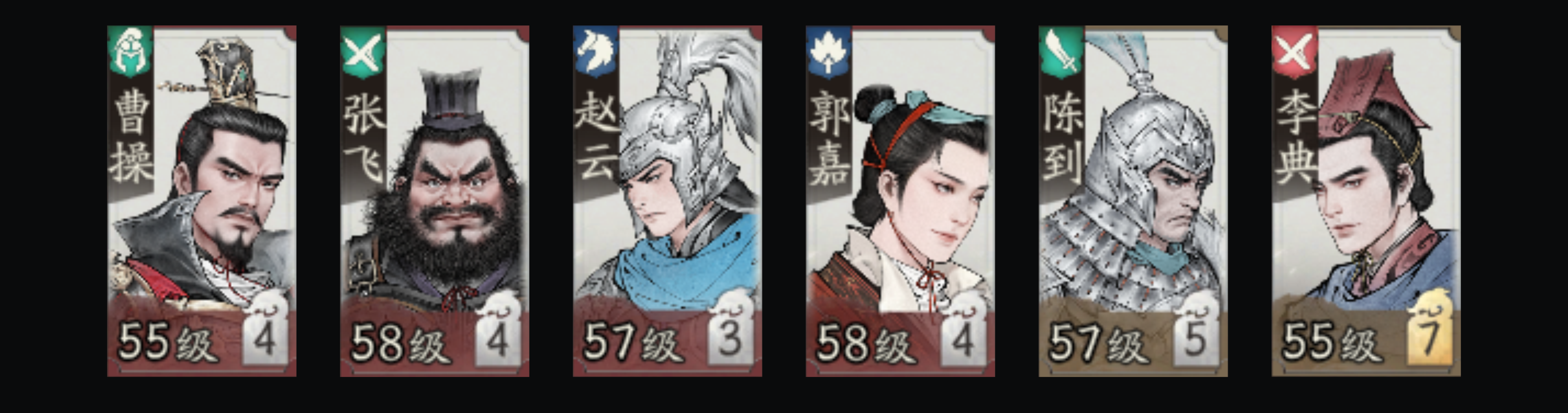 曹操、张飞、赵云、郭嘉、陈到、李典