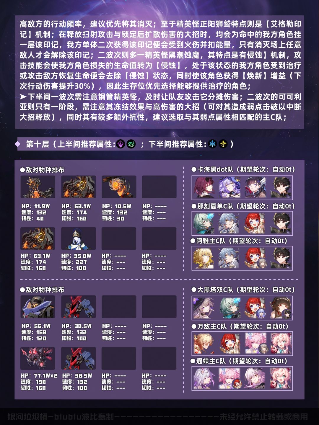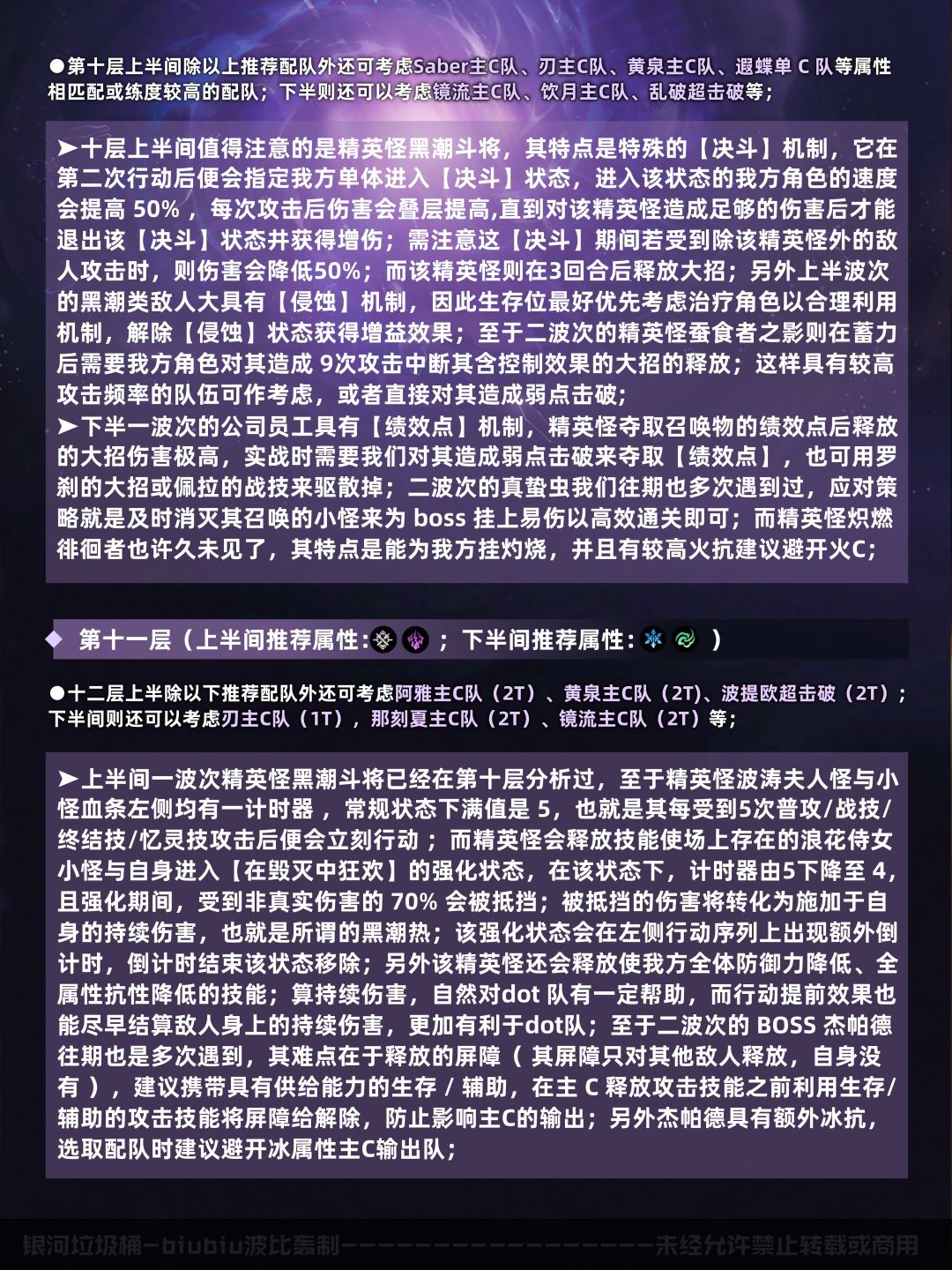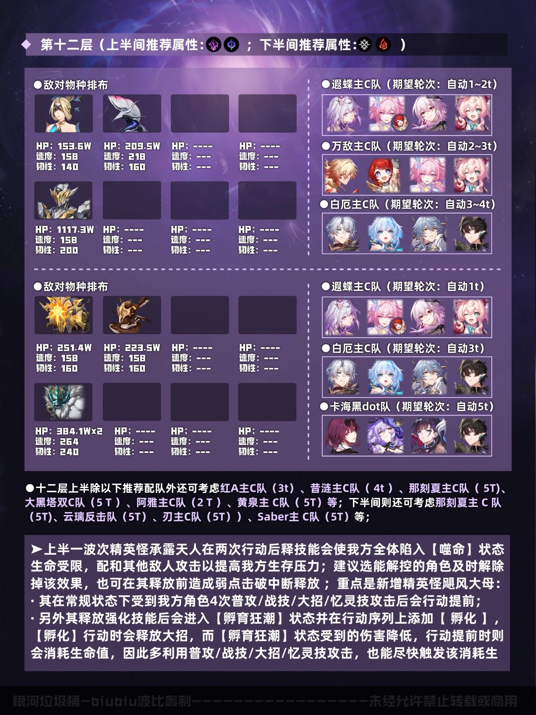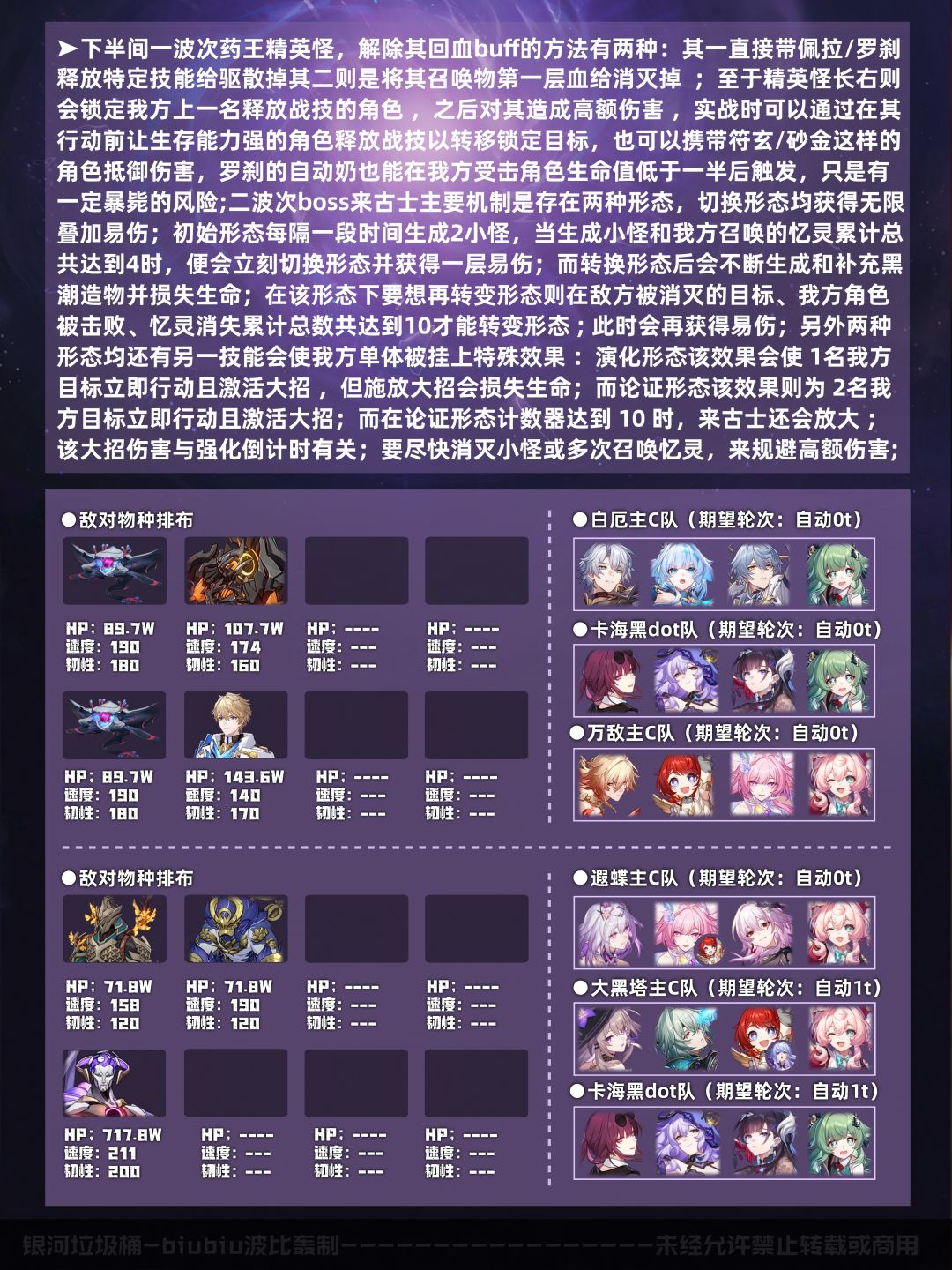 本期关于混沌回忆的攻略到这里就结束了,希望大家多多点赞关注支持一下;帖子分析有限不能做到面面俱到,有错误或问题欢迎在评论区指出,当然也欢迎大家分析自己的通关配队及思路;这里是biubiu波比轰攻略,我们下期再见!
