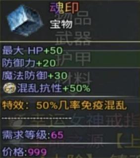 (3)宝物【魂印】:50%几率免疫混乱
