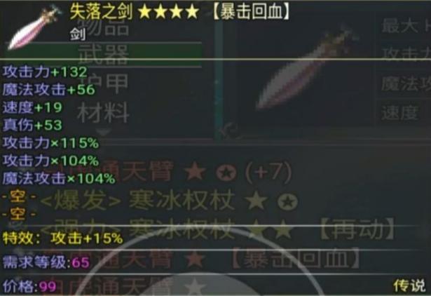 (2)武器:失落之剑(困难难度掉落)