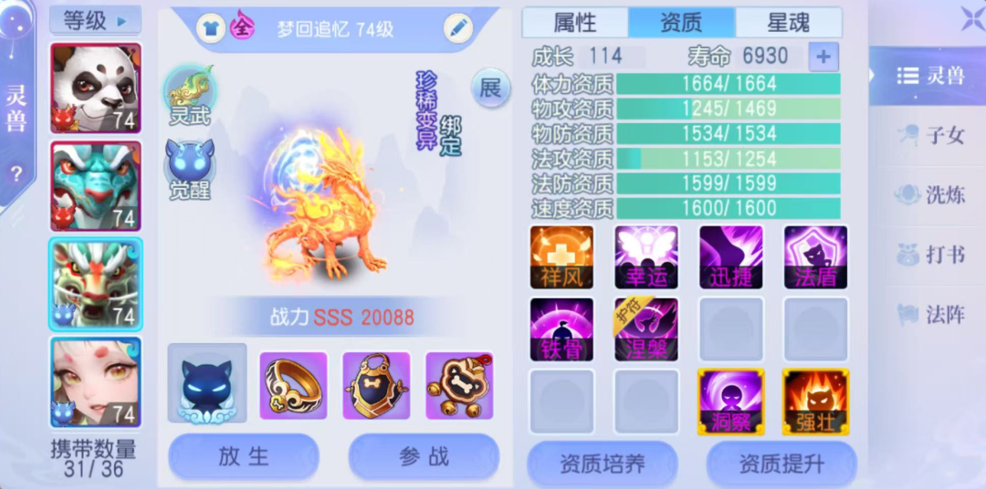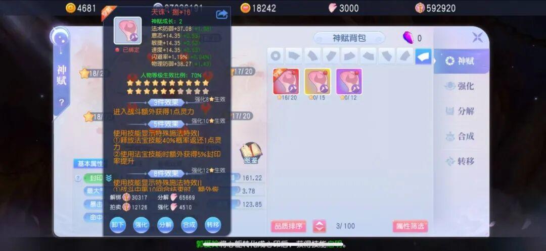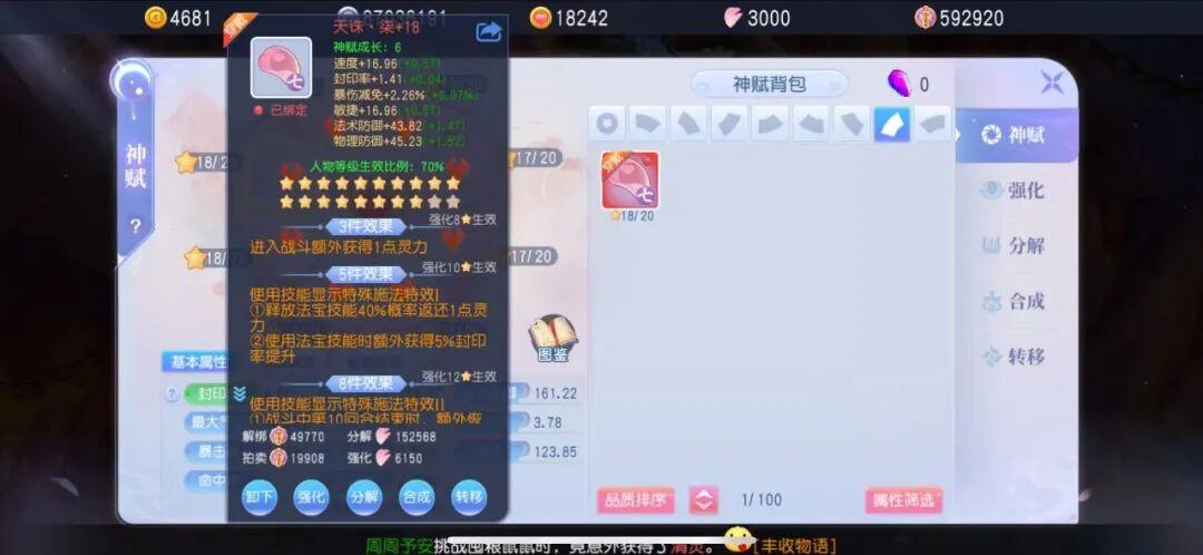 梦未逝:目前精灵没有凤,该开都开完。等级方面还没全部满级。神赋7个红色6属。1个红色5属,装备上还可能存在一点点小瑕疵。后期还要更新精灵等级,神赋还要更新4号位置6属。还有其它没用的属性,装备上还要更新鞋子和护腕的短缺