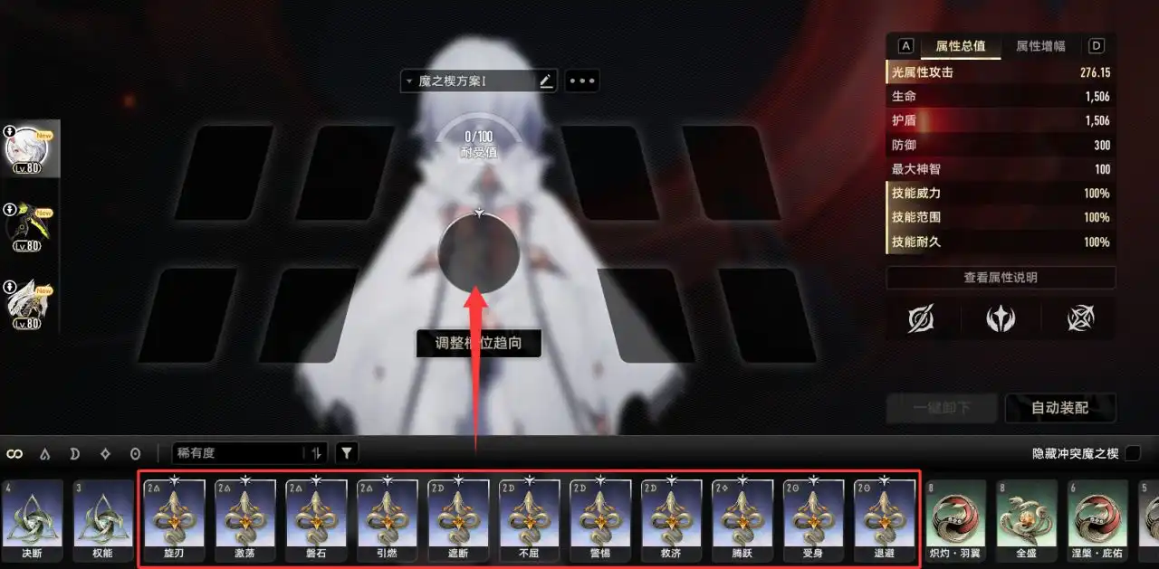 (点击角色魔之楔面板中的调整槽位趋向后,我们就可以设定了)