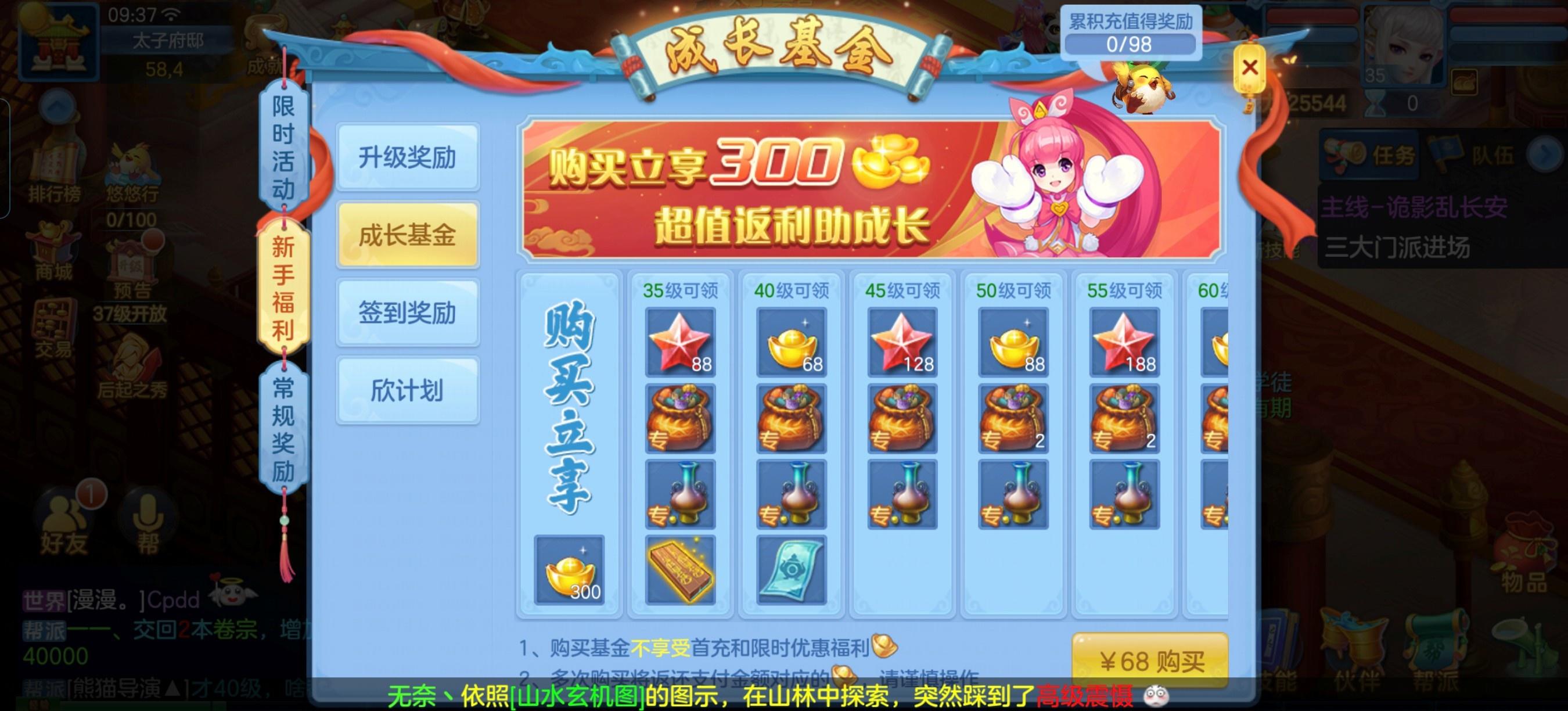 基金68元,立享300金子,后续达到一定等级还有赠送,80级就可以领完所有金币,大概有1000金左右。