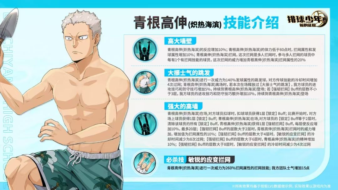 解锁羁绊后,青根高伸(炽热海滨)【拦网】属性增加。